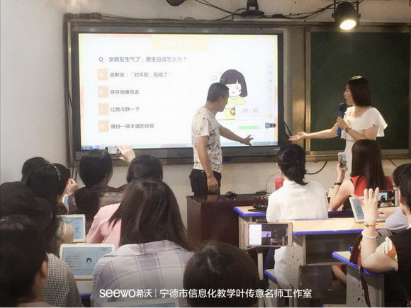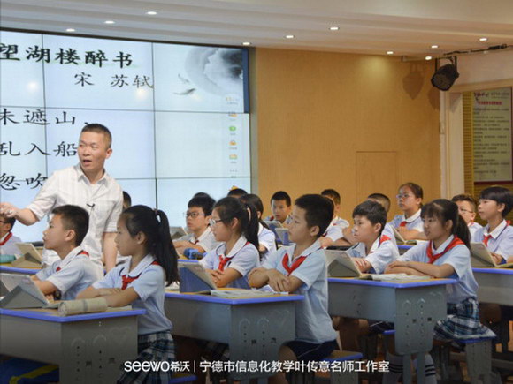 签约仪式过后,工作室正式开始基于希沃易课堂为载体的课堂教研活动。福鼎实验小学的老师们为宁德各县市的观摩老师带来了一场关于智慧课堂的盛宴,先给观摩老师们进行希沃易课堂的培训,随后为各位老师展示基于易课堂为载体的公开课《望湖楼醉书》,得到现场老师们的一致好评。随着教研活动的不推进,老师对信息化探索的持续深入,老师们也渐渐的被希沃易课堂所吸引。