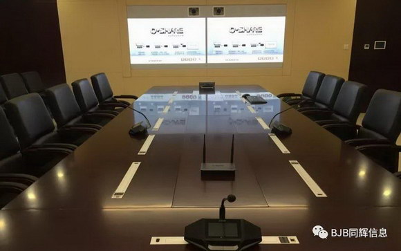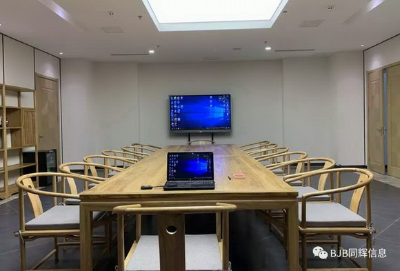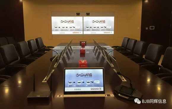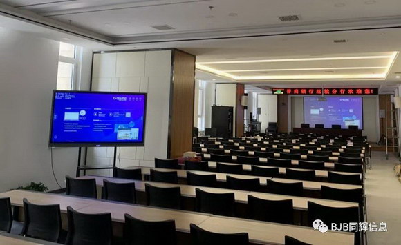 针对远程视频会议室,同辉在银行现有的网络资源的基础上建立一套全方位的语音、图像和数据交互的远程视频会议系统,该系统可应用于远程会商、培训、会议交流等功能需求,以达到提高工作效率、减少差旅开支、降低沟通成本等目标,其中配备高清大尺寸的翻转显示屏,日常本地会议不使用时可翻转折叠,节省空间的同时更给客户带来精彩的视觉感受。