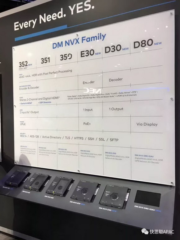 快思聪与英特尔合作,为全球最大的显示器制造商,如LG ®,NEC ®,飞利浦®,Avocor ™,和 Smart®提供原生网络AV解决方案。基于OPS的DM NVX网络解码器可以将显示器即刻转换为原生DM NVX终端。DM-NVX-D80-IoAV是一种即插即用的解决方案,可以使全球大厂生产的显示器能够通过任何网络环境传输音频和4K视频。