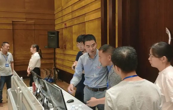 威创技术工程师与嘉宾在探讨易控坐席管理系统在控制室的使用方法