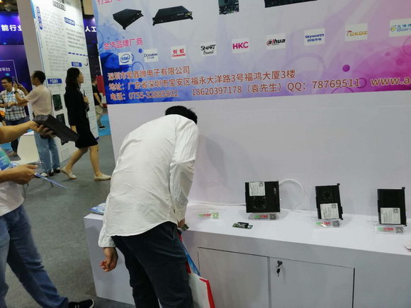本次展会爱鑫微电子(AIOSTAR),向大家展示的是全球首款双系统双ARM芯片OPS可拔插整机,以及最新推出的安卓主板RK3399系列和支持vbyone、lvds点屏转接小板给大家带来新的体验,还有OPS电脑、工业主板、工业计算机和播放终端等一系列产品,吸引众多观众驻足参观、拍照、详细了解产品,现场盛况空前。