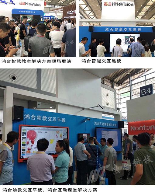 除鸿合智能交互黑板外,作为展会重要参展厂商,鸿合科技还展出了全系列教育产品,包括鸿合智能交互平板、鸿合智能交互白板一体机、鸿合幼教交互平板、鸿合激光投影机、鸿合视频展台、鸿合录播、鸿合电子书包等。另外,鸿合科技还重装推出面向不同应用场景的综合解决方案,如鸿合校园数字媒体发布系统、鸿合双屏互动展示方案、鸿合互动课堂解决方案等成为整个展会中令人瞩目的焦点。