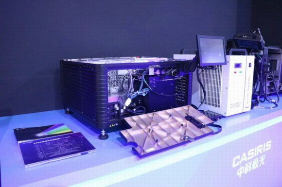 这是一个由中科极光研发的适应中小影厅放映机的RGB纯激光光源改造方案,观众们可以直观看到改造内部的细节。