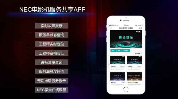 专业、高效、交互是当下NEC完善的服务体系呈现出来的三大特征。张总会上介绍了一组喜人的数字,让与会嘉宾充分感受到了NEC的极致服务:售后服务客户回访满意度高达99.9%;72小时修复率高达94.7%;VIP客户24小时故障修复率达到了87.2%……每一个数字背后都体现着NEC售后的臻心服务。特别值得一提的还有NEC去年在业内首家推出的“NEC电影机服务共享APP”,实现了用户实时故障报修,服务单状态查询,工程师实时定位等多种便捷功能,大大提高了服务效率和质量。近期新上线的“NEC学堂在线课程”模块,进一步完善了NEC售后服务体系,帮助客户实现技能升级,为行业技术人员储备提供助力。