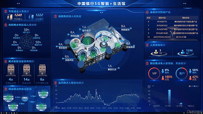 中国银行5G智能+生活馆内部科技感十足,大华不仅为网点场所安全提供智能化防控手段,同时为银行业务部门提供全面的场景数据,基于数据分析挖掘商业价值最大化;通过丰富的数据展现方式,实现更强的科技感互动,客户无感体验全面升级。