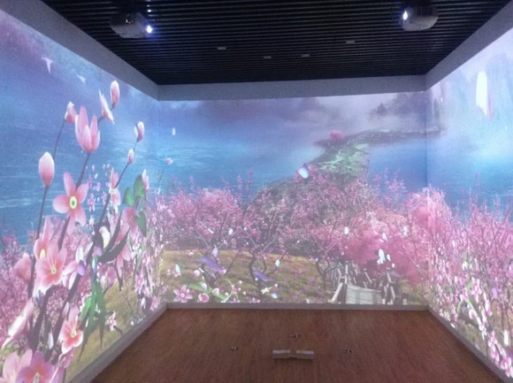 情境式沉浸(Cave)空间是一种沉浸式室内影像系统,运用多台投影将空间内的墙面270°或360°投射影像。通过影片与全方位立体声效果的配合,给学生带来身临其境的视觉体验,带领学生以更开阔的眼界探索世界。