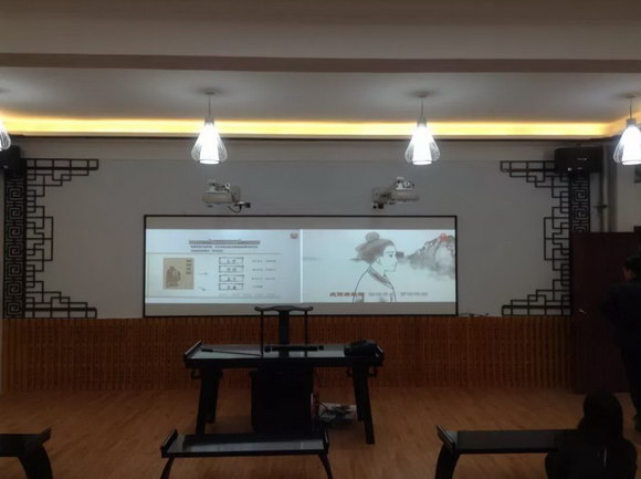 教室中配备了双投影白板教学系统、数字国学探究系统、国风课桌椅等教学设备,将传统文化的历史沉淀与现代科技完美融合。建立富有多样性、选择性的传统文化教学环境,满足学生探索历史奥秘、认识社会生活环境等不同学习需要。