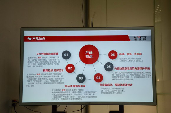 天下武功,唯快不破,任何行业都会去追求的最高境界或者完美的地方。近几年液晶拼接领域为数不多的创新型产品之一。随着整个大屏显示行业的发展,液晶拼接也向着大尺寸化和超窄边化的方向发展,行业内液晶拼接产品五花八门,而迈业斯一直致力于无缝液晶拼接的发展,专注于产品的研发及生产,其产品特点有:0mm视频边缘拼接,视频边缘 跨屏显示,显示域 像素全覆盖 ,高度集成化、模块化屏体设计,内置防信息泄露及电源保护系统,高清高亮长寿命等。其应用领域为:军队、政府安全部门、金融行业、交通指挥中心、大型会议场所以及安防、监控等大屏幕显示领域的发展。