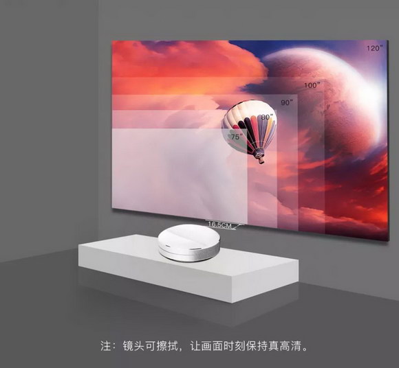 不同于传统投影需要一个较远的距离才能投射大画面,C7UG 采用超短焦技术,投射比例达到 0.233:1 ,只需要放在离墙壁 16.5cm 的地方,即可完整清晰地投射出百吋大画面。在拥有更好的视界的同时占用更小的空间,将空间利用率达到最大化。