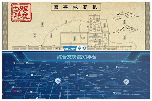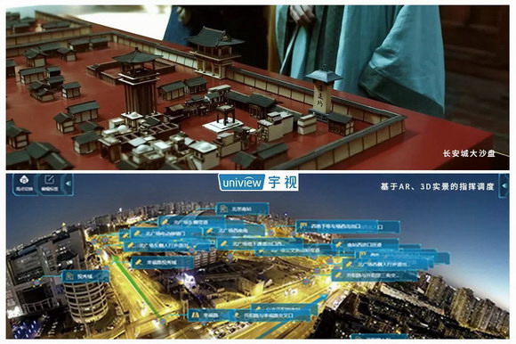 图 长安城大沙盘与宇视基于AR、3D实景指挥调度系统