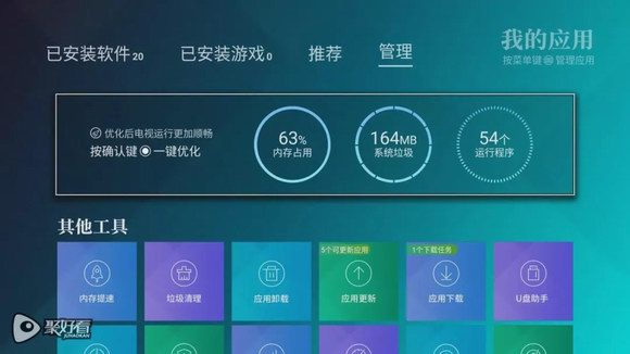 方法六:定期清理缓冲垃圾。长时间使用电视就会累积不少缓冲垃圾,甚至有些没必要的应用占用运行内存,因此定期清理也是能有效降低功效,从而起到散热效果。在海信电视的【我的应用】里的【管理】就可以清理咯。