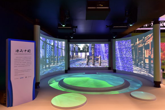 双通道超短焦融合投影大屏部署简单、成本低、显示效果好,是国画多次参展的明星展项,本次方案分辨率进一步升级,以4K平台家族中超短焦双色激光投影机LP50US-4K替代原来LP40US-FH机型,画质更细腻,色彩更艳丽,颇具看点。