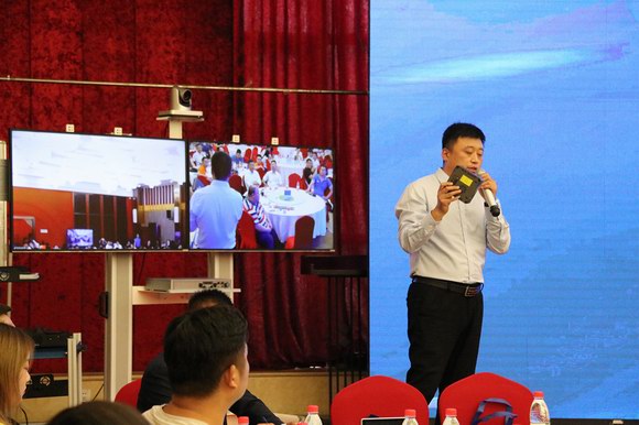 及时会销售总监郎晓伟做产品演示:包括小型会议室有J10一体终端,中型会议室有Y10会议终端和J20云台终端,大型会议室有Y20大型终端。与会人员也高度评价了及时会产品便捷及功能。及时会的产品降低了远程会议成本,增加了易用性,改善了用户体验。