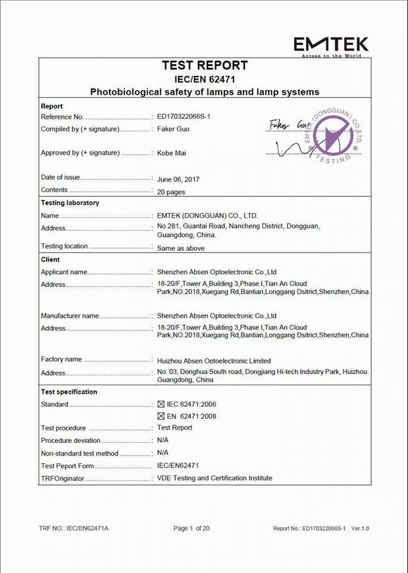 它所依据的标准是GB/T 20145-2006/CIE S009/E:2002,判定的依据是CTL-0744_2009-laser决议。不同波长的蓝光对于人眼的危害效应是不同的,435nm-440nm之间的蓝光对眼睛的危害效应最大,该效应随着波长的增加或递减而逐渐减小。