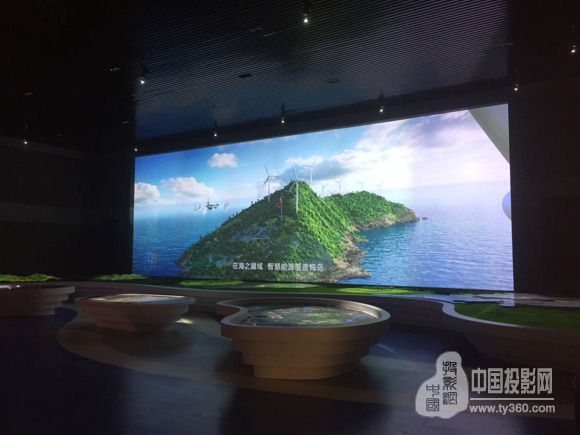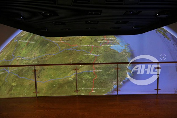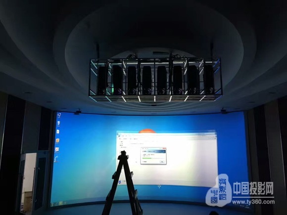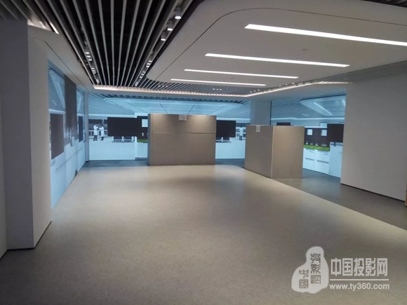该项目由安恒集团提供投影系统解决方案,由于人的视角与视点是1.7米左右的位置向下看,技术人员充分考虑以像素点最小为原则,最终确定选用高清(1920x1200)的投影机,利用12台10,000流明的松下激光工程投影机PT-FRZ98C,采用3*4融合的方式对长33米,宽15米的地面进行投射。