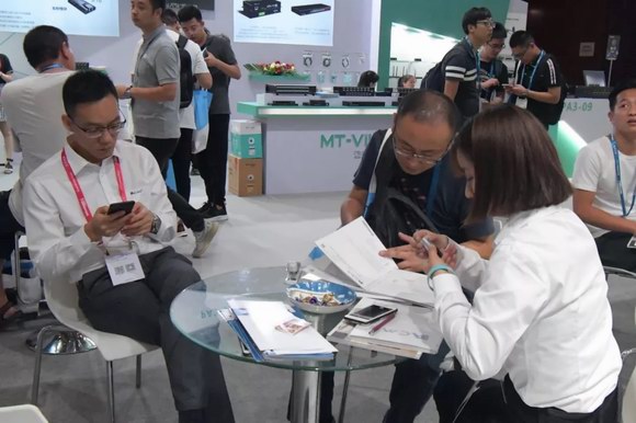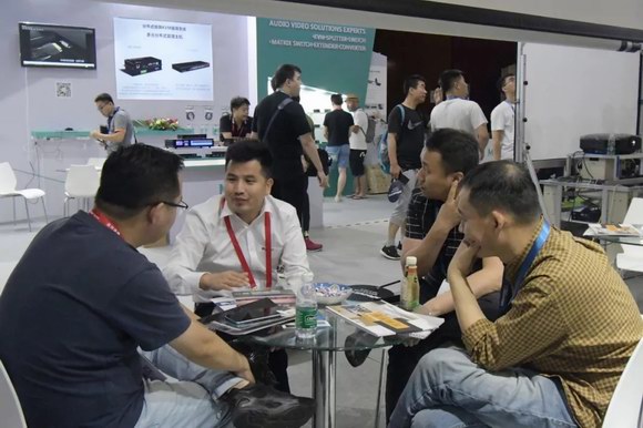 从早上9点开馆开始,ACME(艾可美)展厅就开始陆陆续续有客商进入,从前厅接待处→家庭影院展区→大型工程场馆展区→洽谈区,整条参展线几乎持续保持爆满状态!