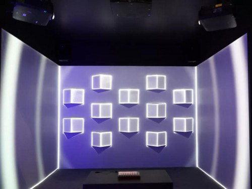 3台【CB-L1715S NL投影机】通过3D mapping方式投射在BOX背景墙上,采用ELPU04短焦变焦镜头,通过超大的镜头偏移,保证画质的显示精度。观众可以通过「键盘和投影画面」进行趣味互动,实现音乐、画面、观众参与的完美融合。
