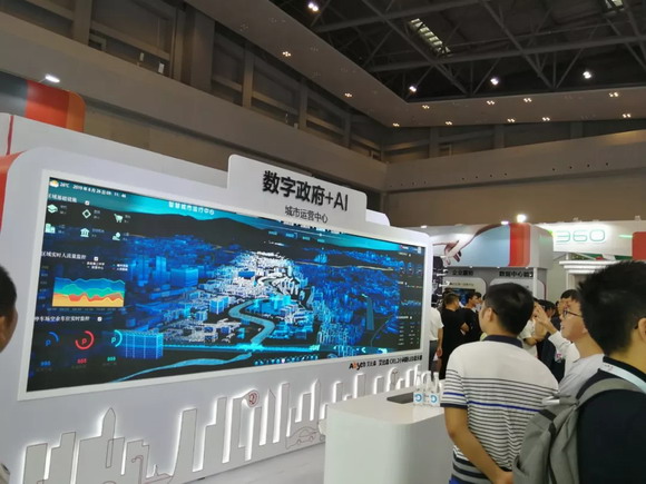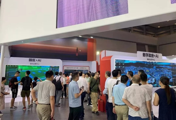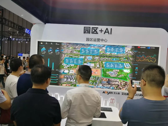华为、谷歌、英特尔、高通、阿里巴巴等互联网界大佬云集。在华为展台(重庆国际博览中心中央大厅C023展位)“园区+AI”、“数字政府+AI”展区,华为模拟深圳龙岗政府分别展示了智慧城市运营中心和园区运营中心,首先映入眼帘的是艾比森LED显示大屏,展示出政府、园区的智慧运行状况,吸引了不少参观者驻足观看。