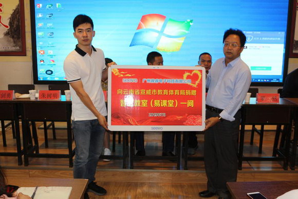 随后,希沃云南办事处总经理罗然向宣威市教育体育局捐赠(易课堂)智慧教室一间,宣威市教育体育局信息教育中心主任朱树明同志接受了捐赠。