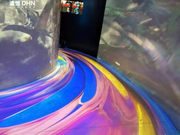 客户做一个临时的活动展厅,要求做出同步沉浸式。更多的显示内容、更高的显示分辨率,使观众在高质量的声画环境包围之中,产生强烈的身临其境感。对资金有限,却又想实现全方位立体沉浸感效果的单位来说,是最佳解决方案。而且在有限的空间里,能实现视觉上的开阔、宏伟气象的效果。
