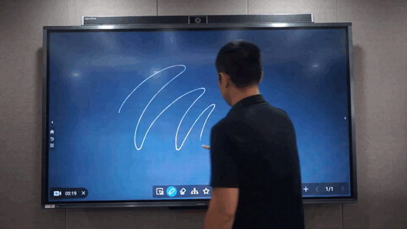 会议进行中,newline“极”系列强大的协同白板功能,可以让用户自由书写,将各种文档或视频插入白板中汇总信息,出色的协同功能,则可令大小屏互通变得简单快捷。打开协同白板,界面简洁清爽,底边工具栏各项功能一目了然。