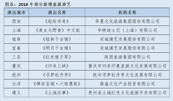 旅游演艺投资热度不减,演出台数仍将保持较高增长。2018年旅游演艺新增47台,同比增长12.1%,远高于前几年的增长。据不完全统计,截止2019年6月,新增旅游演艺超25台,预计全年将超40余台,未来仍将保持较高增速。