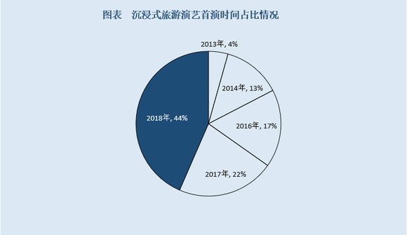 新增11台演出,沉浸式引来爆发式增长。2018年沉浸式演出新增11台,演出总台数达23台,同比增长76.9%。其中《今时今日安仁》、《寻梦牡丹亭》、《红色娘子军》等演出均在2018年公演,演出占比高达44%。