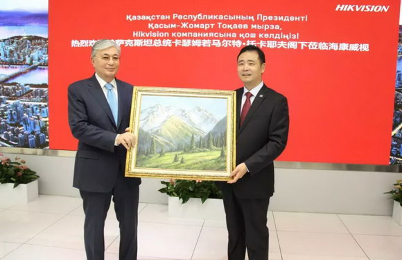 9月12日下午,哈萨克斯坦总统哈斯穆-卓玛尔特·托卡耶夫一行莅临海康威视进行参观访问。
