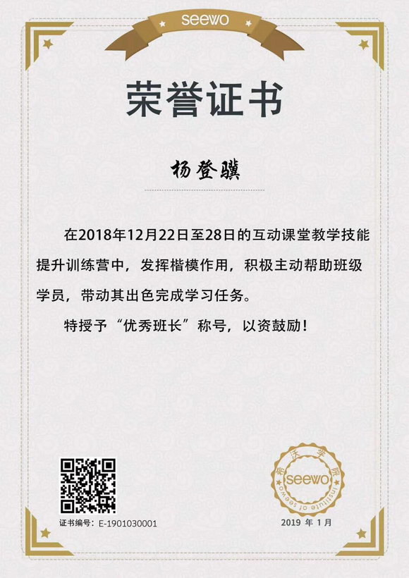 希沃杏坛计划是希沃教育研究院发起的全国教师信息技术与学科融合能力提升项目,认证为希沃杏坛三星导师,意味着他们成为本区域信息化教学的骨干教师,具备组织培训的能力。