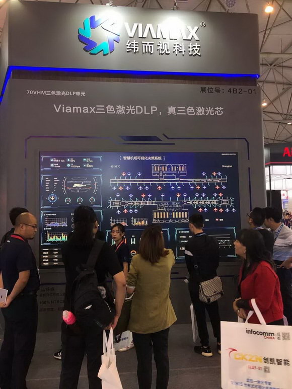 展会现场,Viamax(纬而视科技) 三色激光DLP显示产品,吸引了现场众多来自各地及各个行业领域的系统集成商、工程商、最终用户以及各家媒体等行业精英驻足,细致垂询,络绎不绝。
