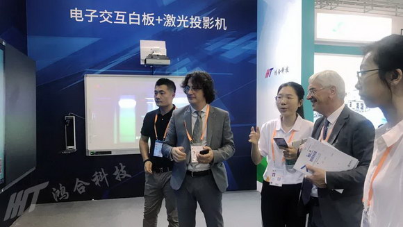 鸿合绿色创新智慧产品引起了外宾们的关注