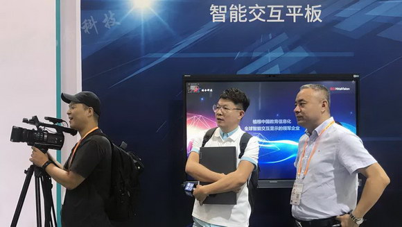 鸿合工作人员接受东南卫视对智能交互黑板的采访