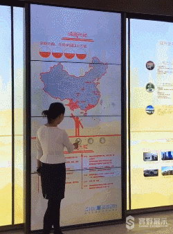 通过特殊设计的机械滑轨控制装置,结合高清液晶拼接幕墙,实现对屏幕内容的互动控制。滑动到不同位置屏幕展示相关信息,包括图片、文字、视频等,观者用手在液晶屏上行动,一目了然。当来宾离开后,屏幕在一定的时间里无人操作,将会自动回来最初的位置。