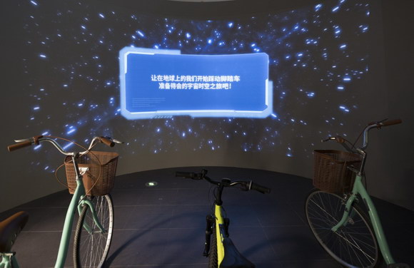 接着呈现在眼前的“风驰电掣·追求光速的脚踏车”场景,则将爱因斯坦提出的“狭义相对论”原理具象化。Vivitek(丽讯)投影机高对比度打造的科技感,让观众身临其境,在体验过程中感受物理的奇妙。采访者骑着脚踏车,模拟物体由快到慢,最后直达光速的运动状态,结合“时空之旅”的概念,穿梭时空扭曲的视觉隧道,到达“未来的地球”。