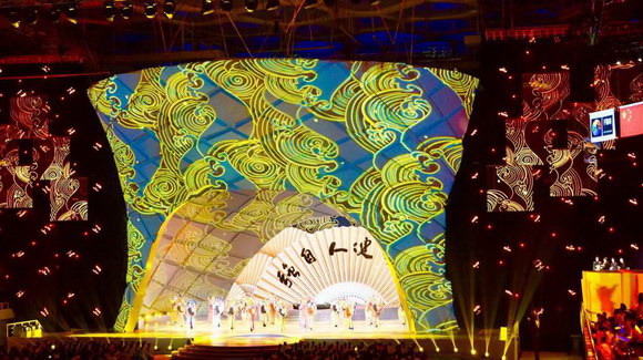 开幕式于 8 月 30 日在国家游泳中心(又称:水立方)举行,表演者在精心设计的巨大篮筐形状的舞台上借助灯光和投影效果,献上了一场主题为“梦的畅想曲”的精彩文艺演出,震撼并征服了所有观众。整场表演的视觉效果由科视在中国的合作伙伴潘多拉视听技术服务有限公司(中国)所提供的 7 台科视Christie 潘多拉魔盒双通道服务器、2 台科视Christie 潘多拉魔盒四通道服务器、3 台科视Christie 潘多拉魔盒四通道播放器,以及 2 台科视Christie 潘多拉魔盒管理器全力呈现。