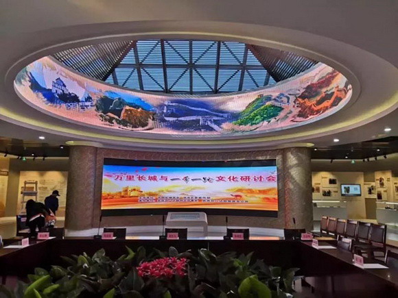 由米优提供的2121哑光系列灯珠、巴科光电设计制造的LED环形屏、弧形屏亮相中国长城博物馆,为展览增添可视性和趣味性的展示效果,也为《万里长城与一带一路文化研讨会》的顺利召开提供服务保障。