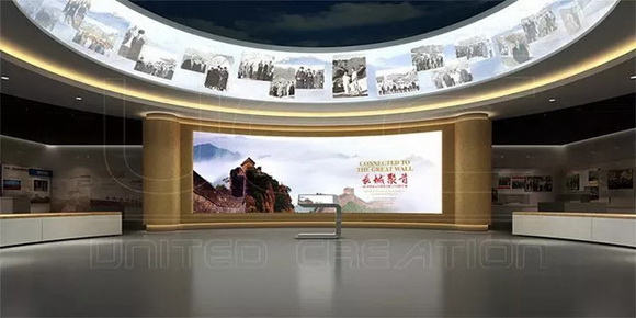 位于展馆显著位置的360°环形LED显示屏、弧形屏,与建筑物完美融合、浑然一体,形成巨大视觉冲击和精彩体验,让参观者直观、全面地读懂“一带一路”构建“人类命运共同体”的精神实质和内涵,让长城文化和构建“人类命运共同体”共建“一带一路”伟大倡仪相互融通。