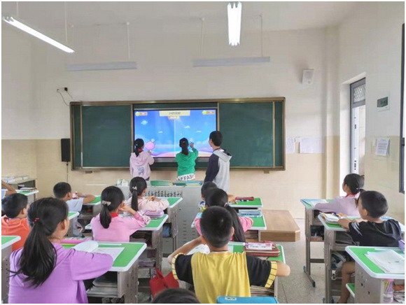 9月27日上午,“小老师”们应用交互式软件希沃白板,按照课程安排分别走进4-6年级教室开始了授课。