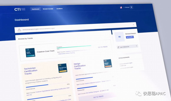 快思聪技术学院网站不仅有着崭新界面,还有全新的 CTI 快思聪技术学院课程的深造规划,并且新增多条吸引人的认证规划路线,适合销售人员,设计工程师,现场技术人员,和现场工程师。当然,依旧包括久负盛誉的快思聪编程课。