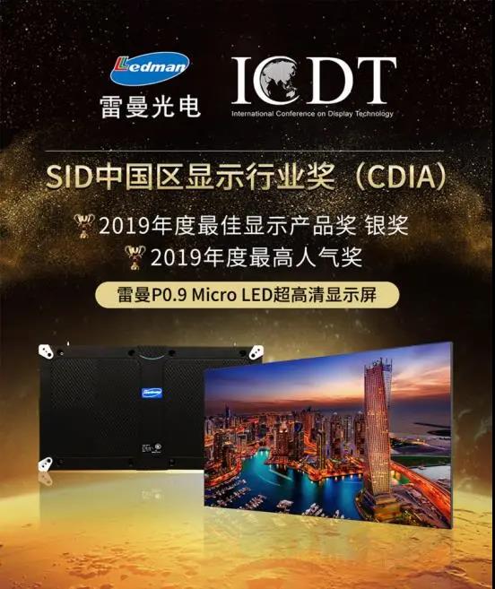 其中,雷曼光电P0.9 Micro LED超高清显示屏获得2019年度最佳显示产品奖银奖与最高人气奖两项大奖,成当晚大赢家。