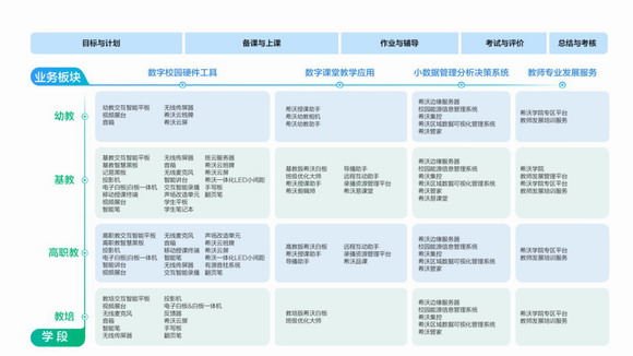 从交互智能平板出发,目前,希沃硬件产品家族已涵盖基础教育、高职教、幼教、教培等多个领域,涵盖墙面一体化教学终端、教学辅助设备、音视频采集与远程教学系统、智慧课堂学生终端、扩音广播系统、校园考勤及文化展示终端等多种品类。