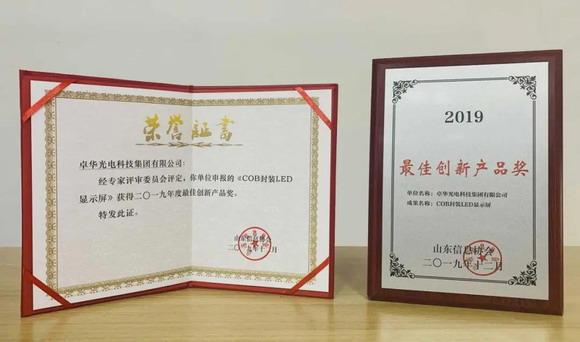 凭借过硬的技术实力和产品研发设计的不断创新,Voury卓华COB封装LED显示屏获得了2019年度最佳创新产品奖。