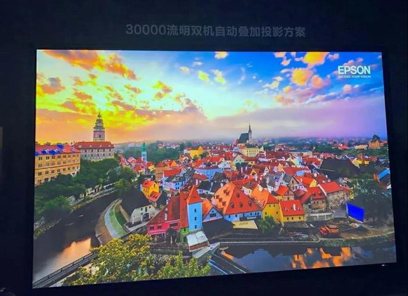 元点未来携手爱普生全新上市的30,000流明*1*2激光工程投影机亮相光亚展,使用投影机内置的自动叠加功能,展出双机自动叠加投影方案,可实现60,000流明*1*2超高亮度方案,在户外楼体秀、舞台演绎、大型会议中心等场景助力行业用户大放异彩。