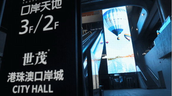 衔接港珠澳三地的人工岛地块,最大程度承载了港珠澳大桥的超级红利,是珠海经济新的爆发点。洲明文创有幸参与港珠澳大桥珠海口岸人工岛LED显示屏建设,仅用时40天,在港珠澳大桥世茂口岸城点亮了236㎡的高清全彩LED透明屏。