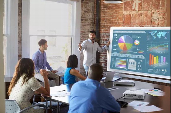 目光锁定在爱普生商用投影机投射的屏幕上。