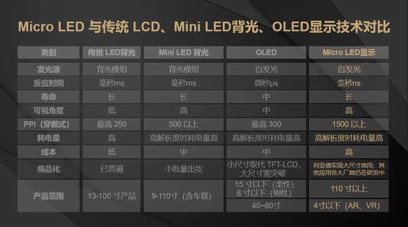 Micro LED无论从LED芯片、工艺实现方法和驱动技术来看,均与传统LED显示技术存在显著差别