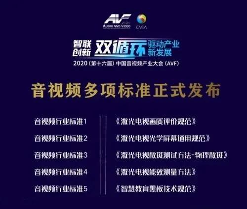 与会现场,根据技术发展和市场需求,中国电子视像行业协会协调相关市场主体共同制定的多项行业评价标准正式发布并实施:《智慧教育黑板技术规范》、《激光电视画质评价规范》、《激光电视光学屏幕通用规范》、《激光电视散斑测试方法-物理散斑》、《激光电视能效测量方法》。