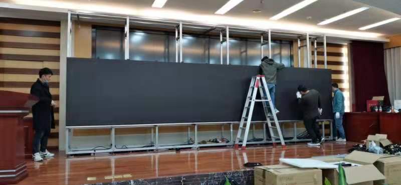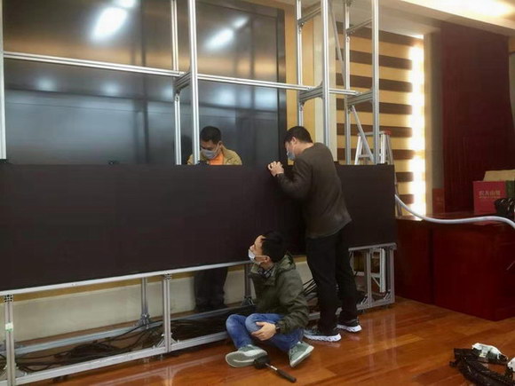 正值新春佳节,全体员工休假,但各部门同事深知疫情不等人,迅速整装集结,了解库存状态、组织工程安装、设备运输等,各项工作紧锣密鼓地展开。针对现场安装高度不足的问题,工程师们在公司总部对现有的支架进行切割改造,运抵现场后再与先期抵达的显示单元、处理器等设备进行搭建、调试,突击队员们通宵加班,争分夺秒抢时间。到大年初三上午8 时,通常需要一周才能完成的系统,从设计、备货、运输,到安装、调试,仅36小时就顺利建成,比要求完成的时间整整提前了12个小时!