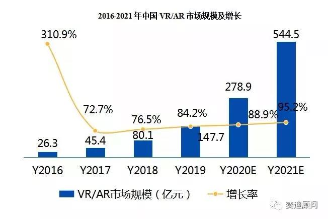 2016-2021年中国vr/ar市场规模及增长