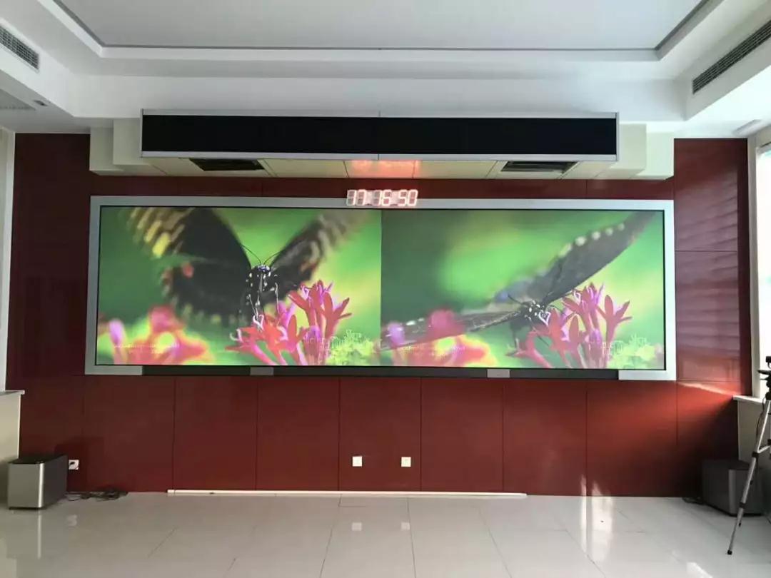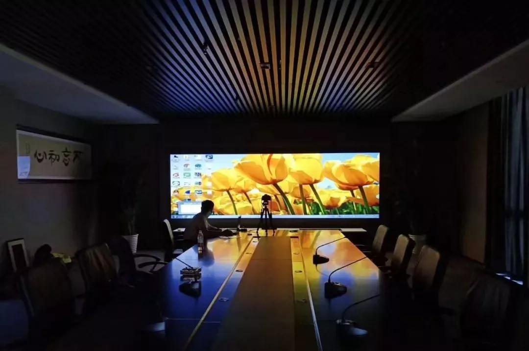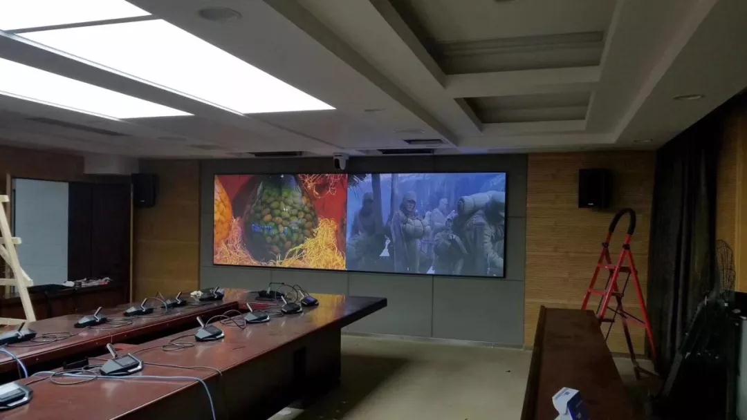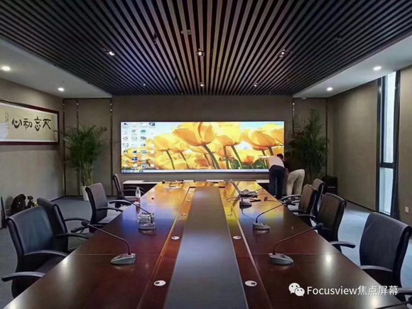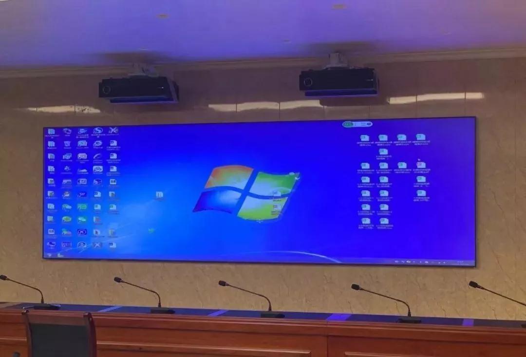 ▲某市中国人保某会议室,焦点2x100激光融合硬屏搭配两台sharp激光投影